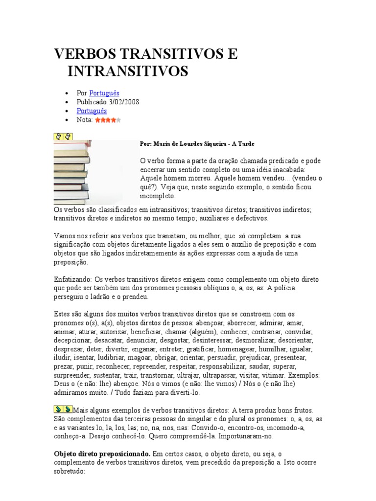 Verbos Transitivos Diretos E Indiretos Conjugacao De Verbos