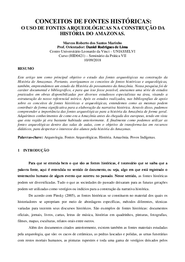 Pdf Conceitos De Fontes Historicas O Uso De Fontes Arqueologicas