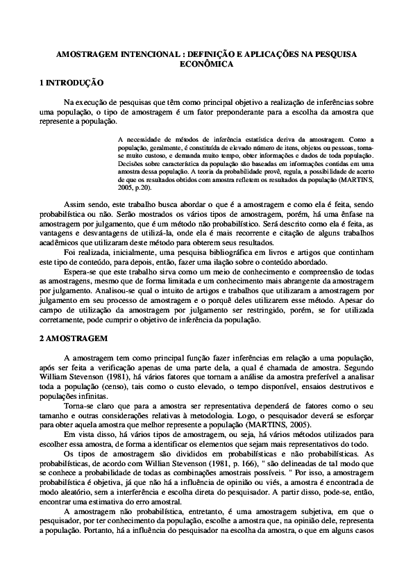 Doc Amostragem Intencional Definicao E Aplicacoes Na Pesquisa