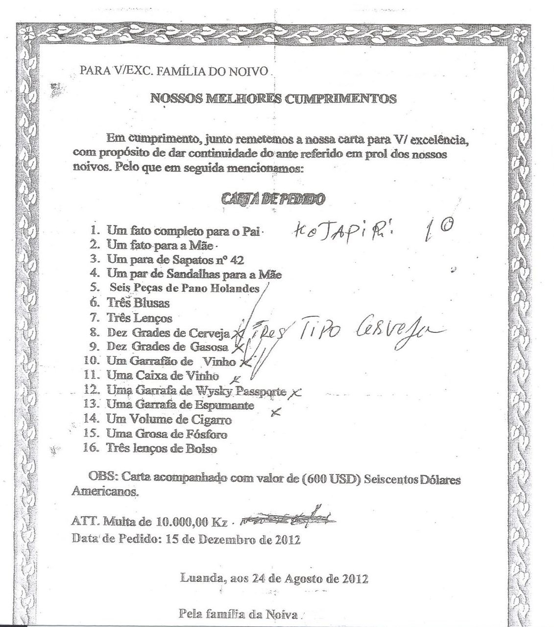 Jijo Wilian Mendes Ramos Carta De Pedido De Noivado Angola