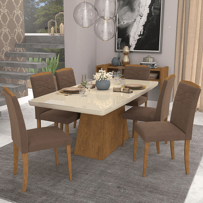 Conjunto De Mesa De Jantar Cimol Helen Com 6 Cadeiras Vanessa