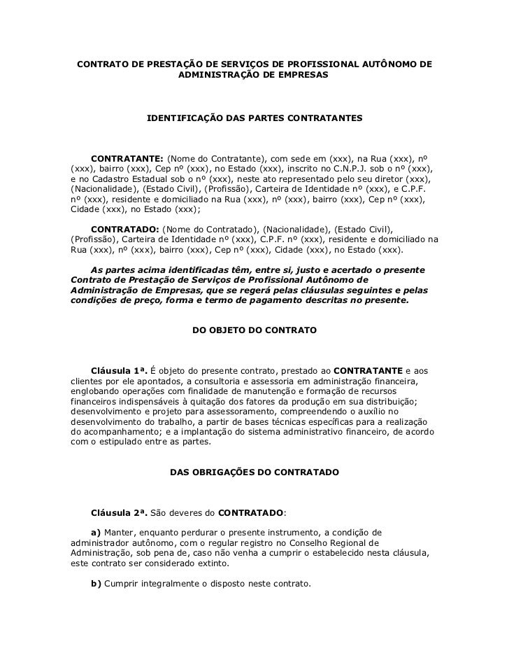 Coleção completa Exemplo De Contrato De Serviço Autonomo.