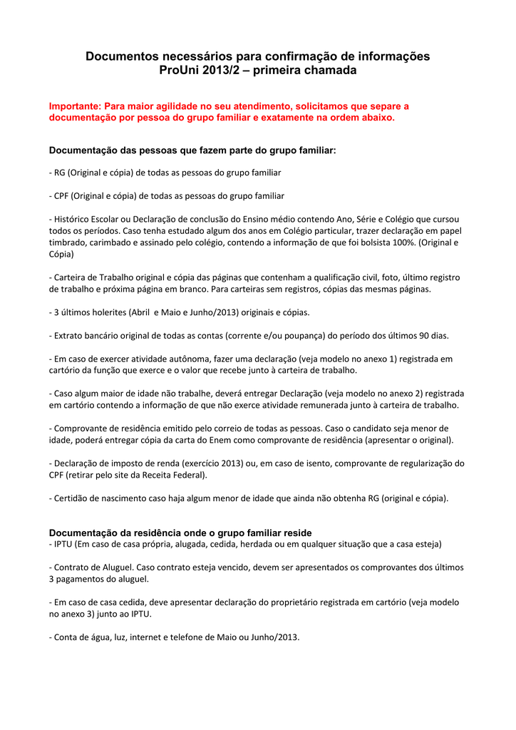 Documentos Necessarios Para Confirmacao De Informacoes Prouni