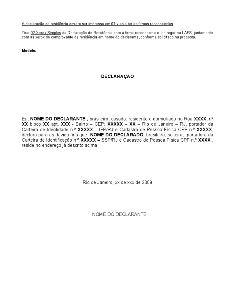 Modelo De Declaracao De Residencia Endereco