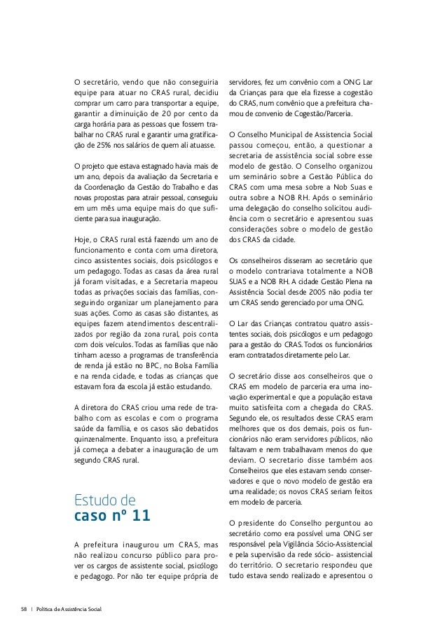 Estudo de caso nº 11 a prefeitura inaugurou um cras mas não realizou concurso público para pro ver os cargos de assistente social psicólogo e pedagogo.