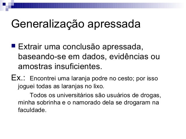 Completo com dados Exemplo De Falacia De Generalização Apressada.
