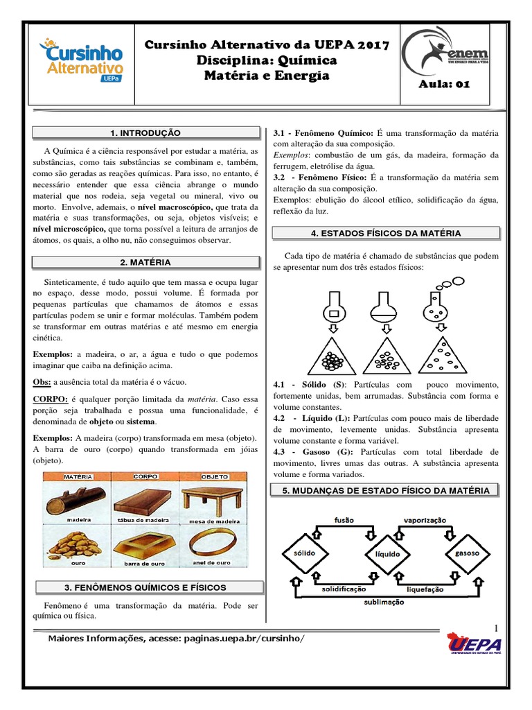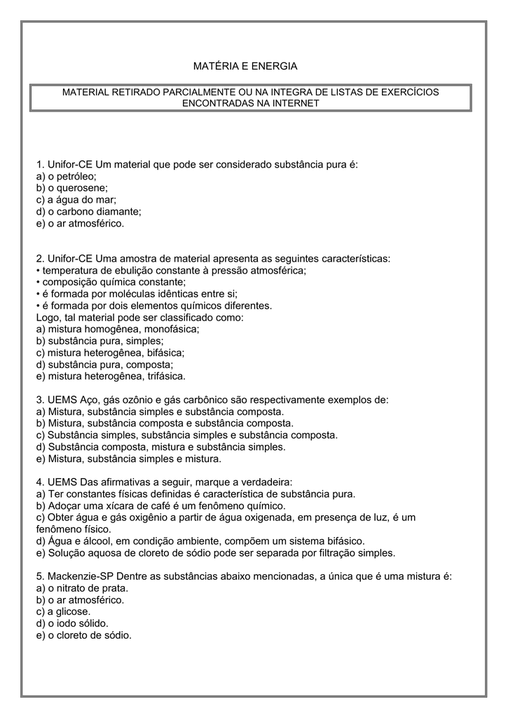 Materia E Energia 1 Unifor Ce Um Material Que Pode Ser
