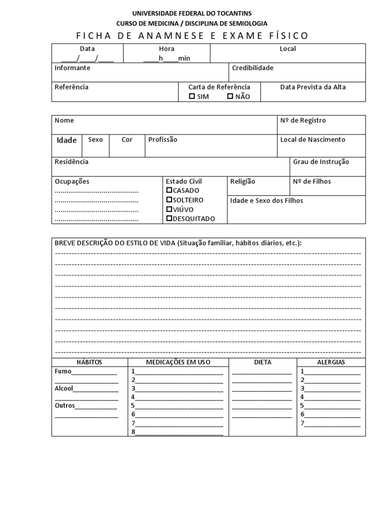 Ficha Anamnese Exame Fisico Especialidades Medicas Medicina