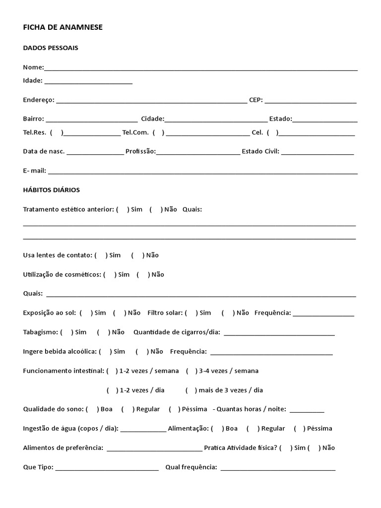 Modelo De Ficha De Anamnese Com Imagens Anamnese Ficha