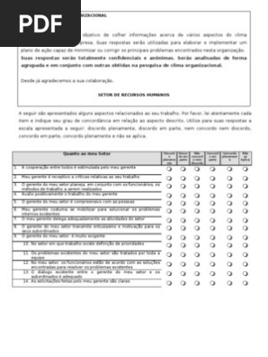 Questionario Clima Organizacional 1 Gestao De Recursos Humanos