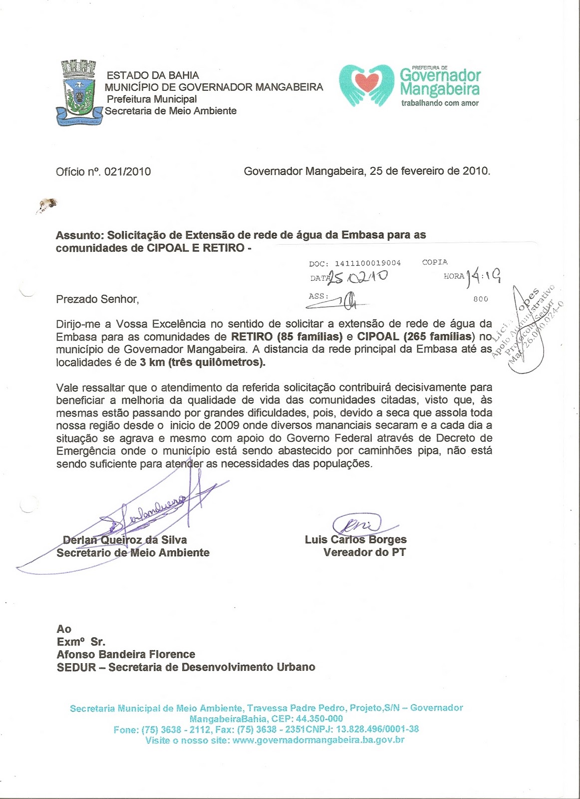Na Luta E Na Labuta Solicitacao De Agua Da Embasa Para