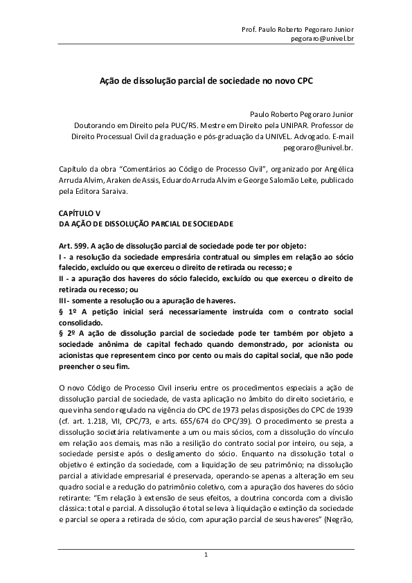 Pdf Acao De Dissolucao Parcial De Sociedade No Novo Cpc Paulo
