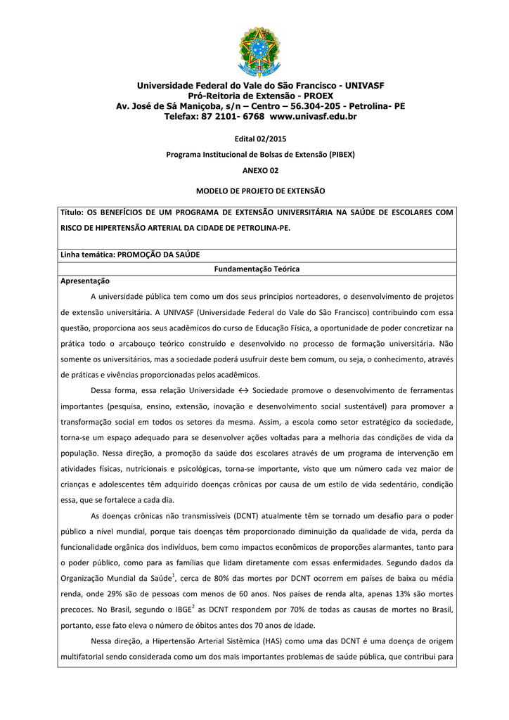 87 2101 67 68 wwwunivasfedubr programainstitucionaldebolsasdeextensão pibex201382014 anexo02 modelo de projeto de extensão título.