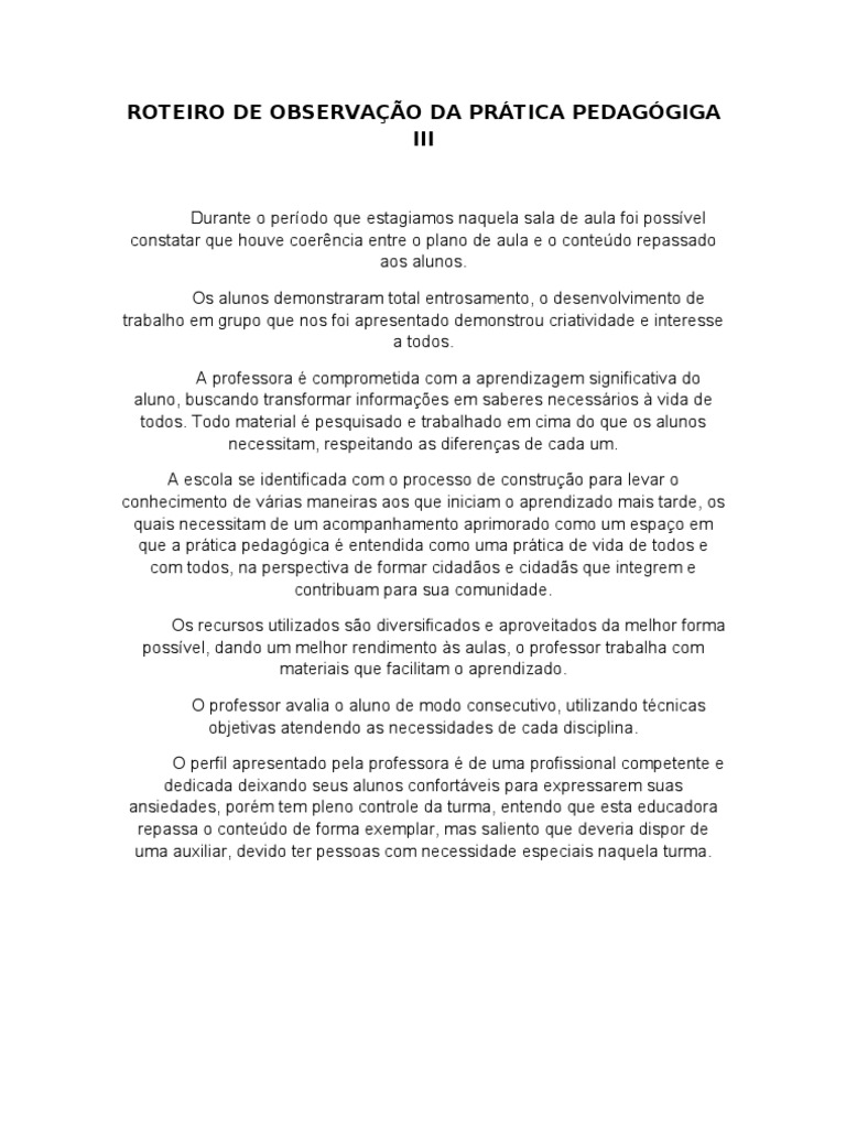Dados sobre Exemplo De Relatorio De Observação Em Sala De Aula.