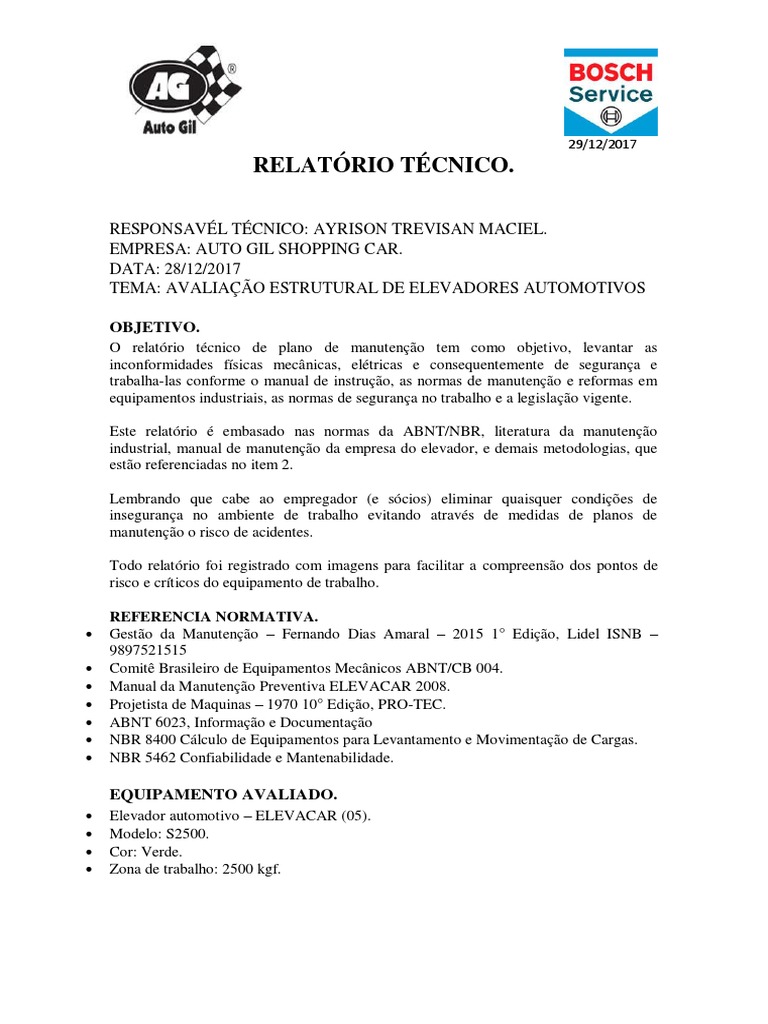 Aqui está a informação completa sobre exemplo de relatorio tecnico de manutenção. O administrador do blog de Novo Exemplo 07 January 2019 também coleta outras imagens relacionadas ao exemplo de relatorio tecnico de manutenção abaixo.