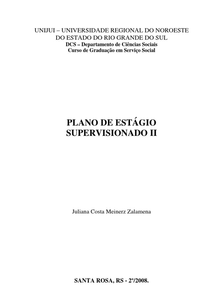 Plano De Estagio Supervisionado Em Servico Social Ii Trabalho