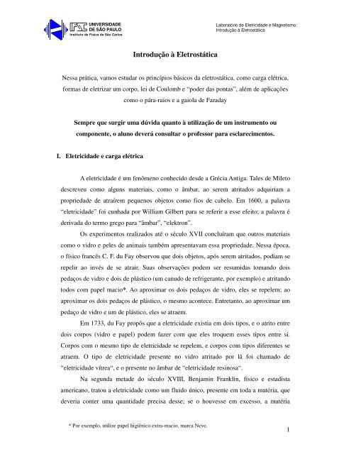 Introducao A Eletrostatica Ifsc