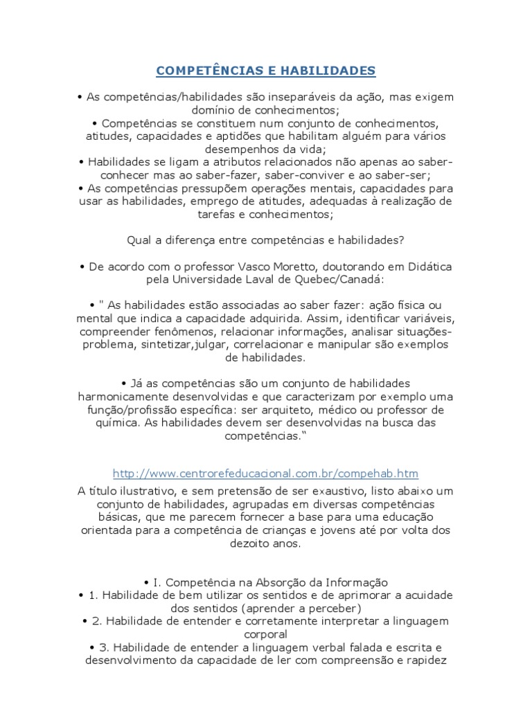 Informações sobre Exemplos De Habilidades E Competencias Na Educação.