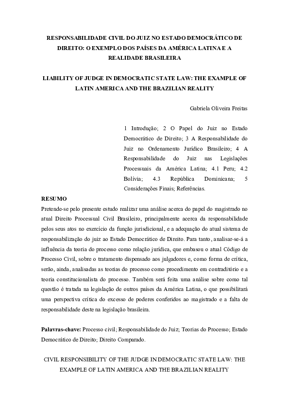 Pdf Responsabilidade Civil Do Juiz No Estado Democratico De