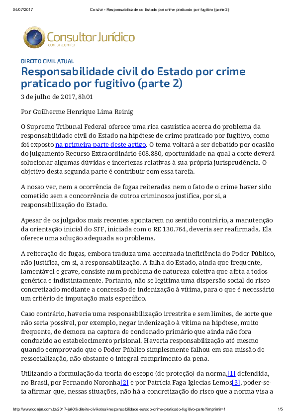 Pdf Responsabilidade Civil Do Estado Por Crime Praticado Por