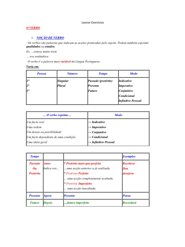 Informações sobre  Exemplos De Verbos No Preterito Mais Que Perfeito.