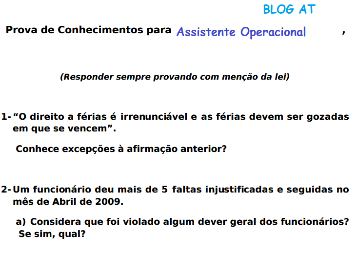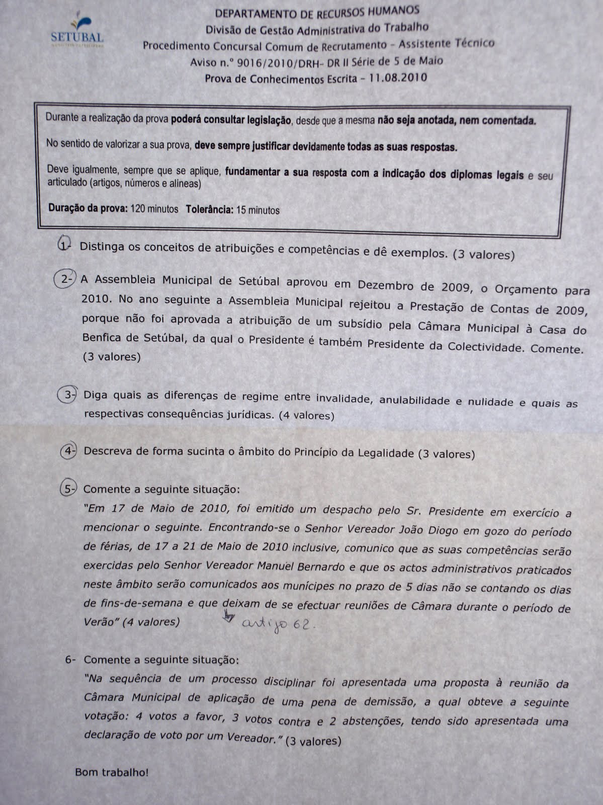 Os Meus Sites Prova De Conhecimentos Para Assistente Tecnico