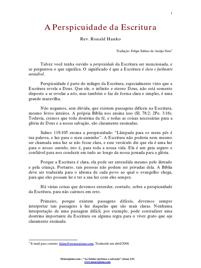 A Perspicuidade Escritura Dag R Hanko Biblia Santo