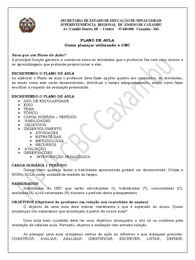 Roteiro Plano Aula Comentado Modelo De Plano De Aula Docsity