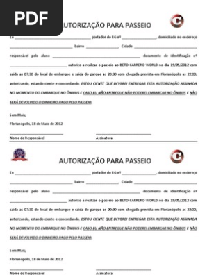 Resultado De Imagem Para Modelos De Autorizacoes Para Passeios