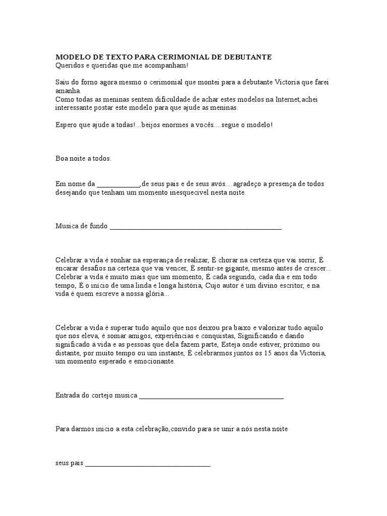 Modelo De Texto Para Cerimonial De Debutante Docx Document
