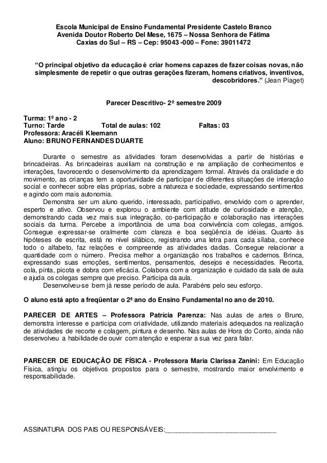 Assim, as informações que podemos compartilhar sobre exemplo de parecer descritivo da educação infantil. Obrigado por visitar o blog Novo Exemplo 02 January 2019.