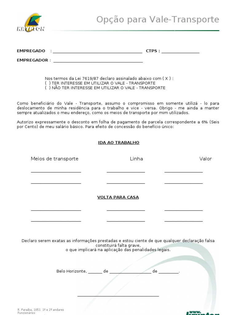 Modelo Recibo De Vale Transporte J3no3x6dj5nd