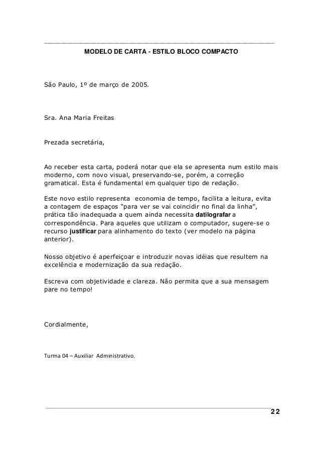 A carta deve obedecer às mesmas características das outras cartas as quais já foram citadas.