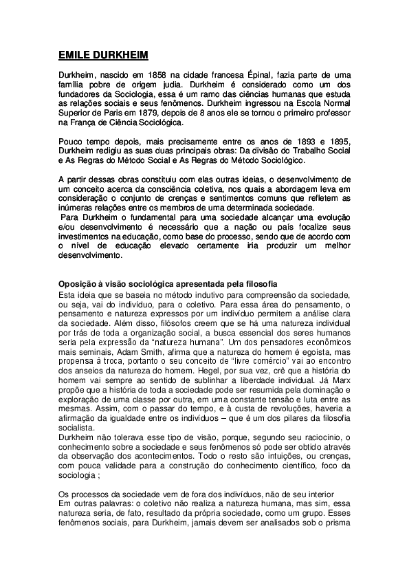 Exercicios Sobre Emile Durkheim Com Gabarito Resumo