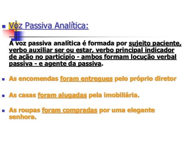 Dados sobre Voz Passiva Analítica E Sintética Exemplos.