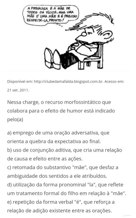Nessa Tirinha A Personagem Faz Referencia A Uma Das Mais