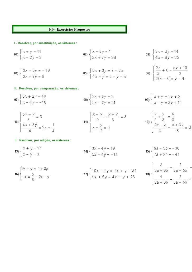 Exercicios Conjunto Solucao Equacao Do Primeiro Grau Primeiro