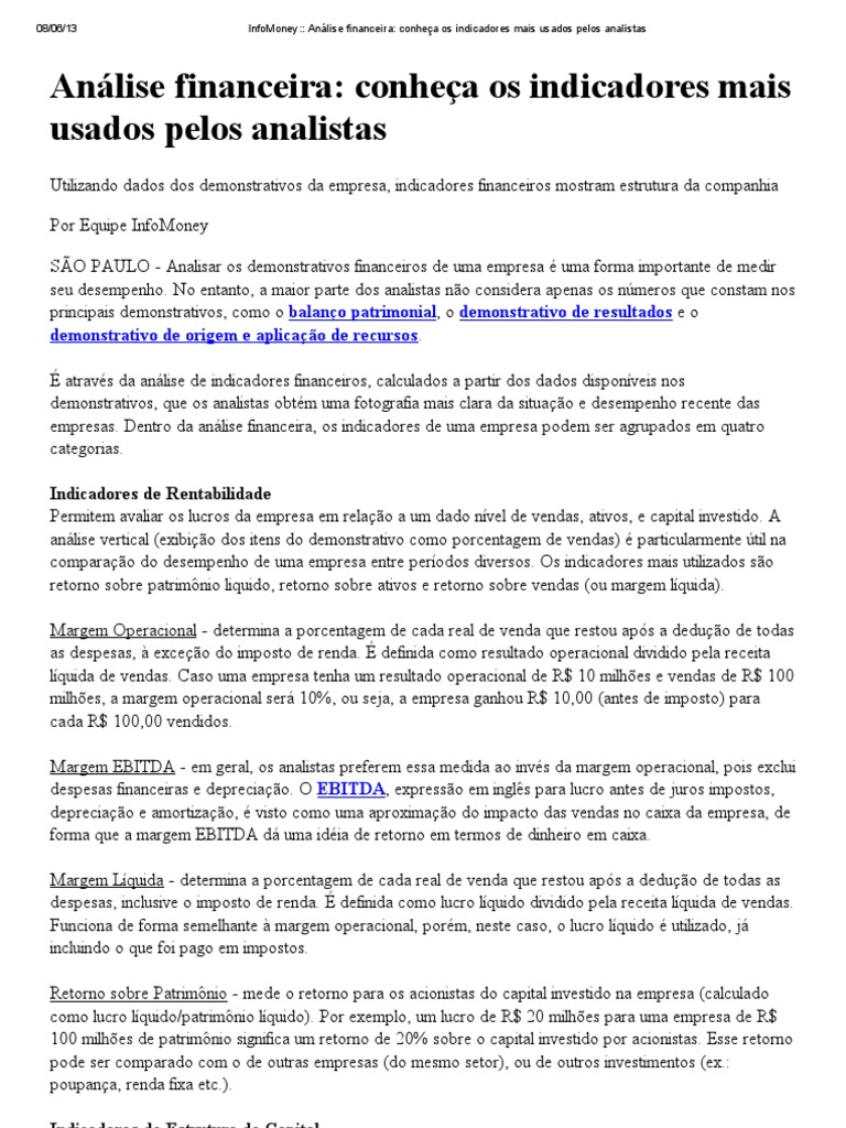 Informações completas sobre Exemplo De Analise Financeira De Uma Empresa.