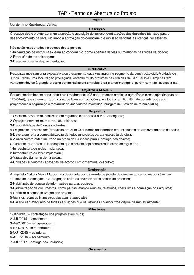 Projeto Construcao De Uma Creche Escola Tap Termo De Abertura