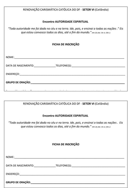 Resultado De Imagem Para Modelo De Ficha De Inscricao Na Catequese