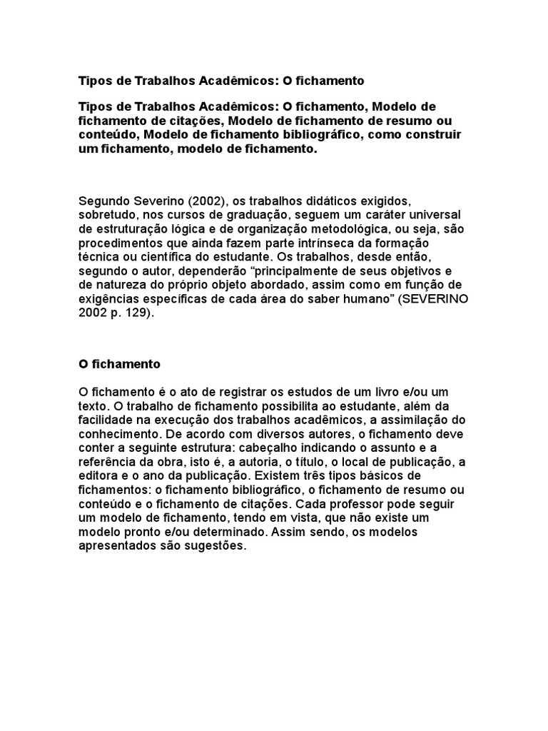 Fichamento Como Fazer Tipos E Modelos Toda Materia