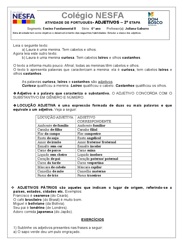 10 Atividades Com Locucao Adjetiva Para Imprimir Online Cursos