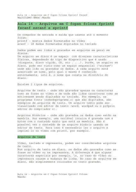 Aula 14 Arquivos Em C Fopen Fclose Fprintf Fscanf Sscanf E Gse