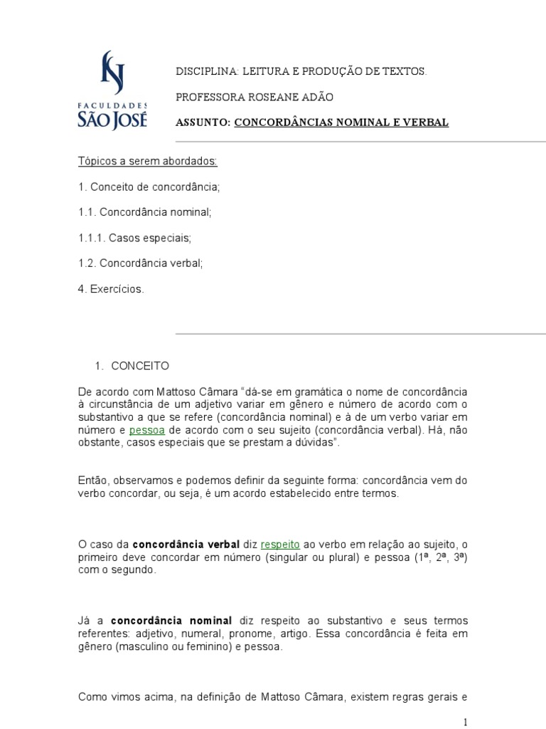 Aula Concordancias Verbal E Nominal Com Exercicios 1 Assunto