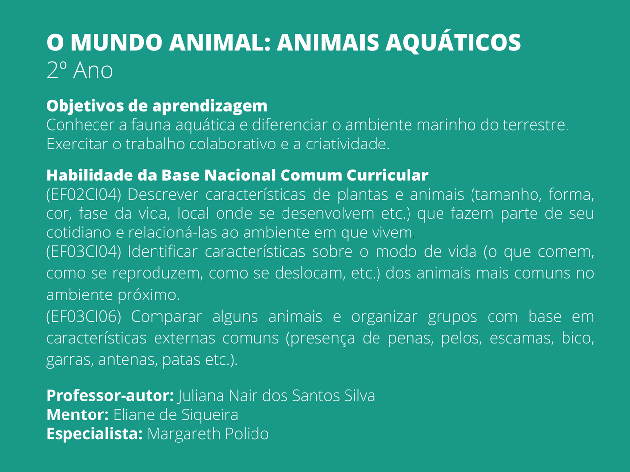 Plano De Aula 2º Ano Ciencias Animais Aquaticos