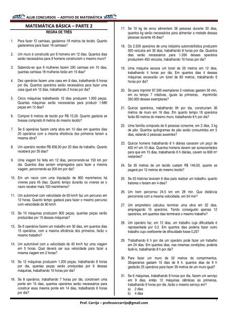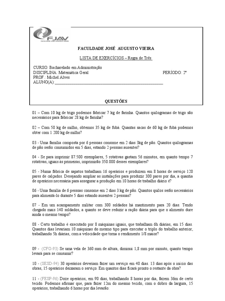 Exercicios De Regra De Tres Composta