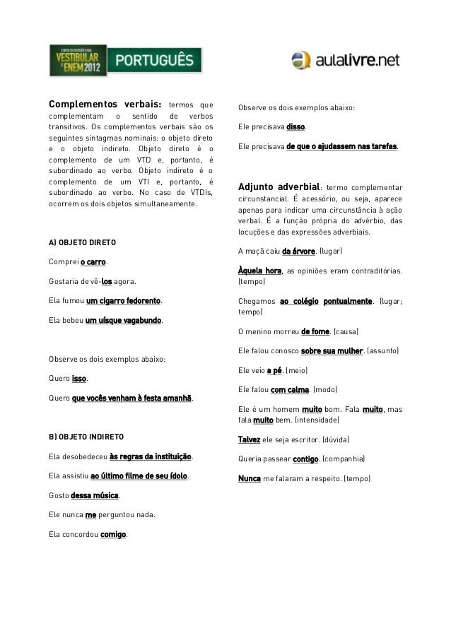 Regencia Verbal Verbos Transitivos Diretos Vtd Pdf Free Download