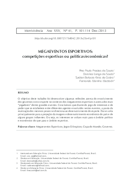 Pdf Megaeventos Esportivos Competicoes Esportivas Ou Politicas