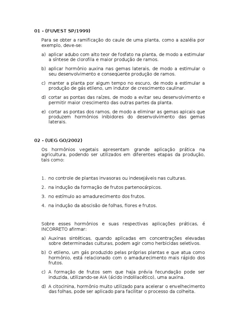Biologia Exercicios Hormonio Vegetal Auxinas