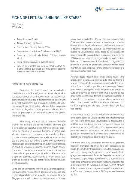 Ficha De Leitura Shining Like Stars Gbu